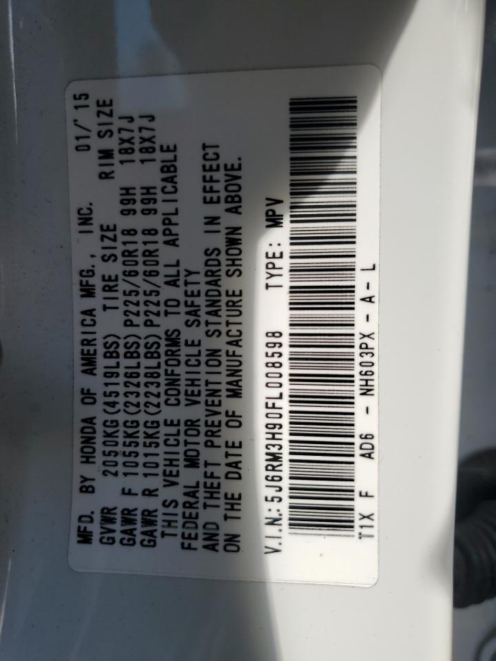 Колір БілийЦиліндри 4VIN 5J6RM3H90FL008598Стан Заводиться та їде (перевірено)Ушкодження Передня або задня