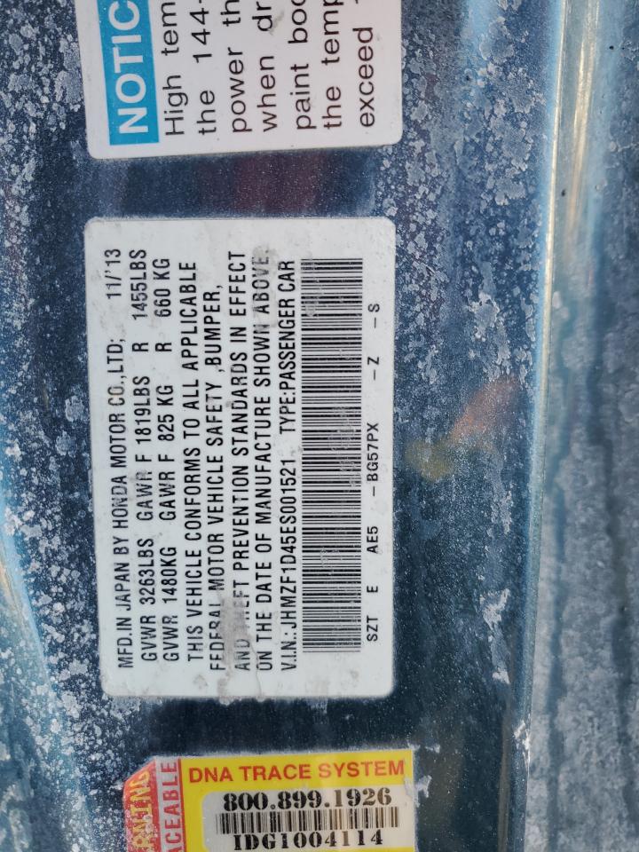 Колір СинійЦиліндри 4VIN JHMZF1D45ES001521Стан НевідомоУшкодження Пожежа