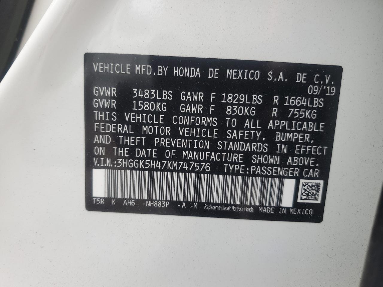 Колір БілийЦиліндри 4VIN 3HGGK5H47KM747576Стан НевідомоУшкодження Передня або задня