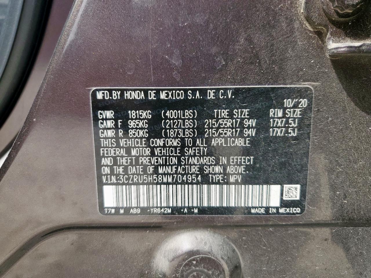 HONDA HR-V 1.8 2021 р.в., (3CZRU5H58MM704954) з США