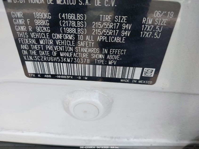 HONDA HR-V 1.8 2019 р.в., Повний привід (3CZRU6H53KM730378) з США