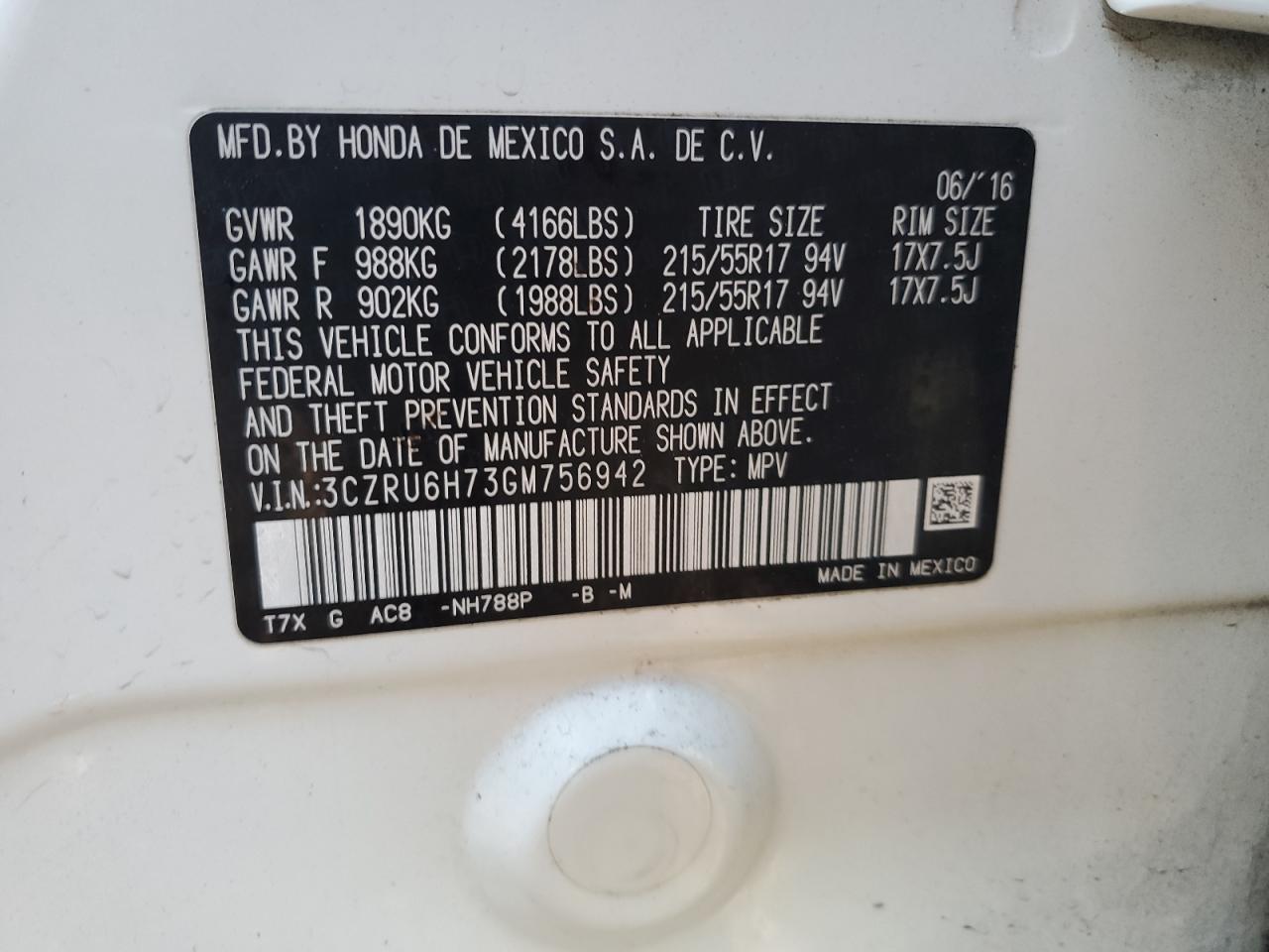 HONDA HR-V 1.8 2016 р.в., Повний привід (3CZRU6H73GM756942) з США