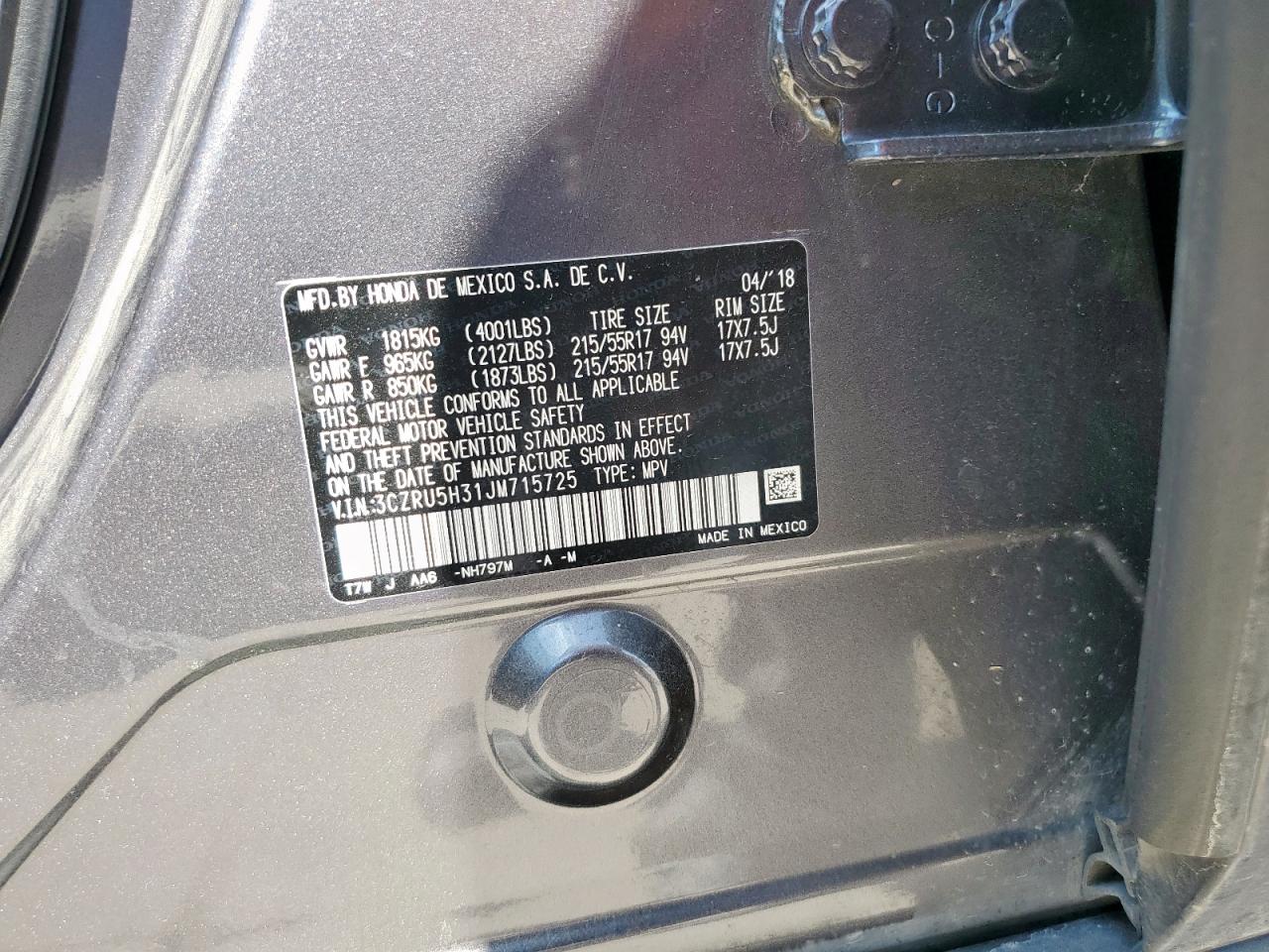 HONDA HR-V 1.8 2018 р.в., (3CZRU5H31JM715725) з США