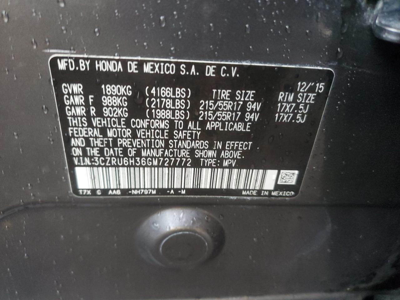 HONDA HR-V 1.8 2016 р.в., Повний привід (3CZRU6H36GM727772) з США