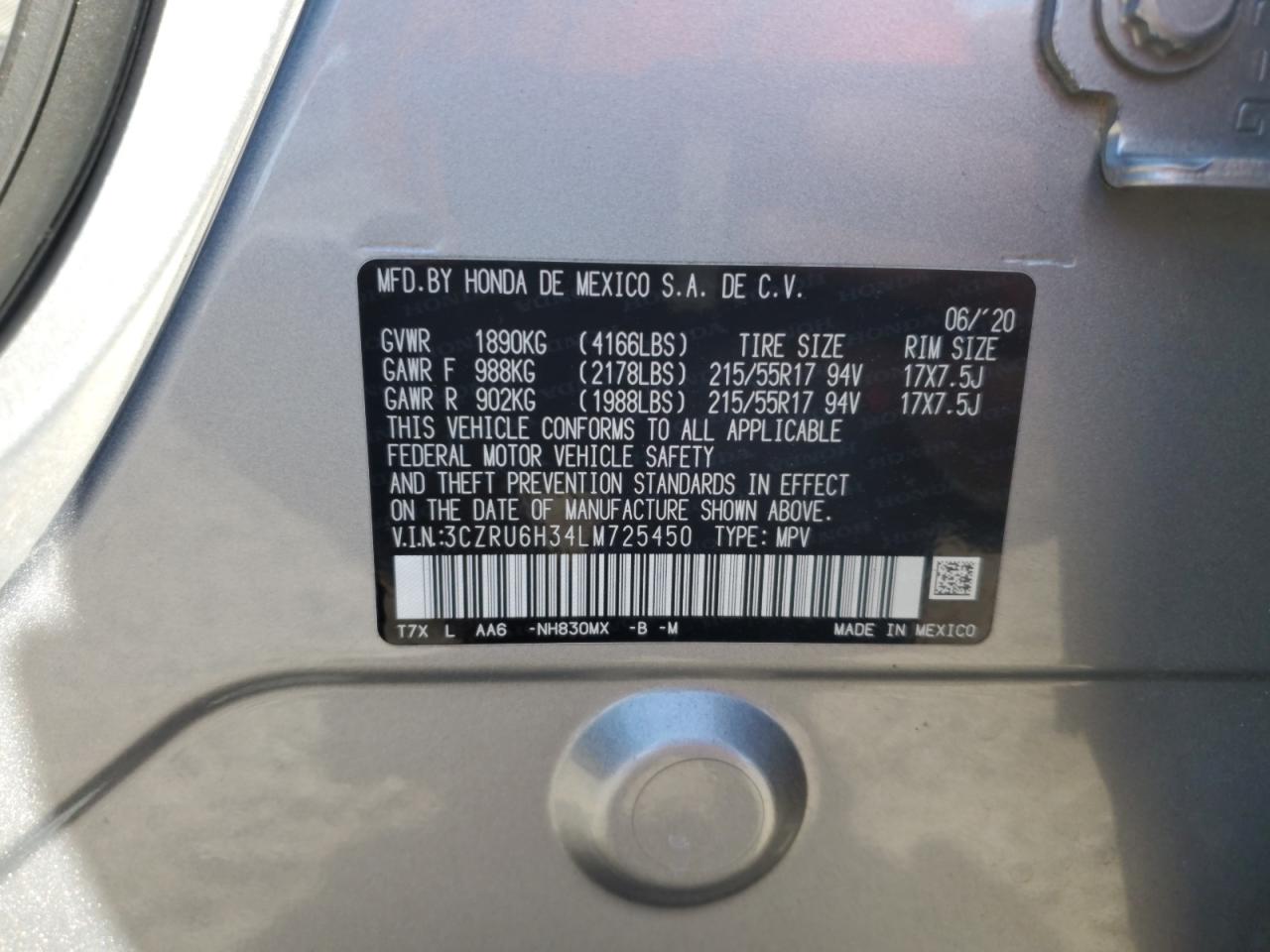 HONDA HR-V 1.8 2020 р.в., Повний привід (3CZRU6H34LM725450) з США