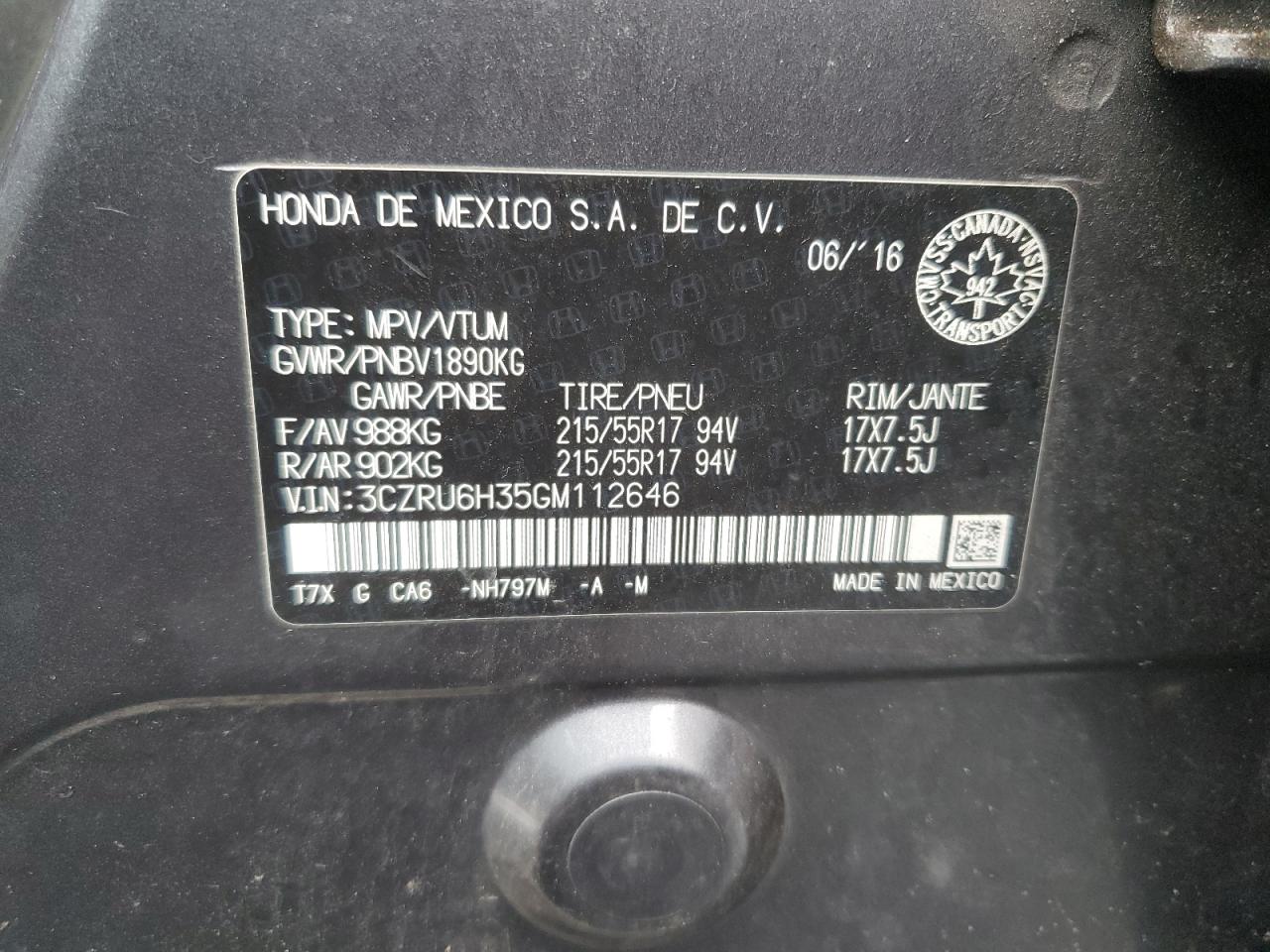 HONDA HR-V 1.8 2016 р.в., Повний привід (3CZRU6H35GM112646) з США