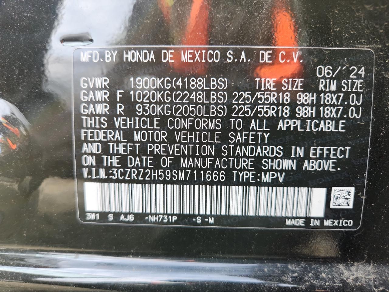 HONDA HR-V 2.0 2025 р.в., Повний привід (3CZRZ2H59SM711666) з США