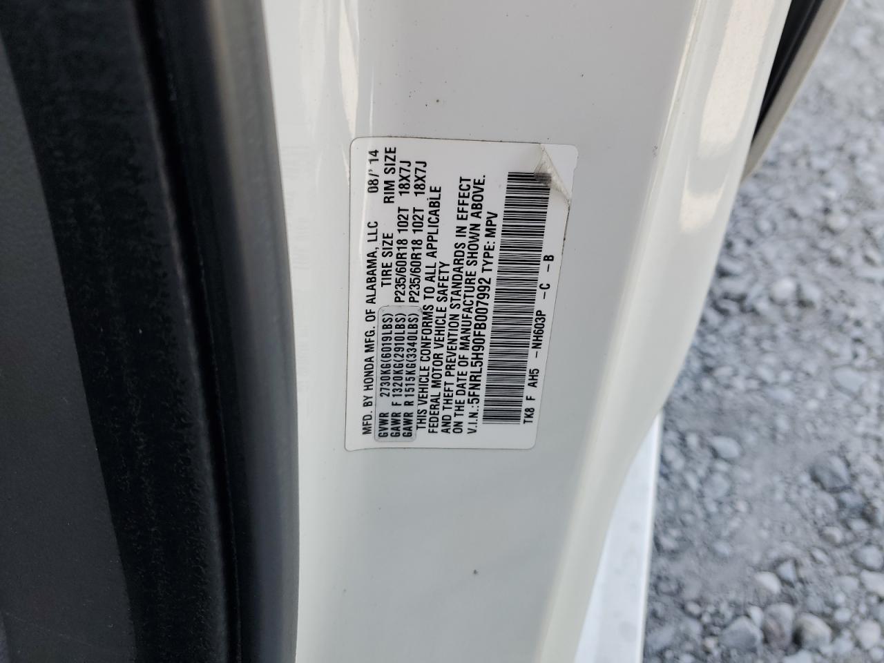 Колір БілийЦиліндри 6VIN 5FNRL5H90FB007992Стан Заводиться та їде (перевірено)Ушкодження Задня