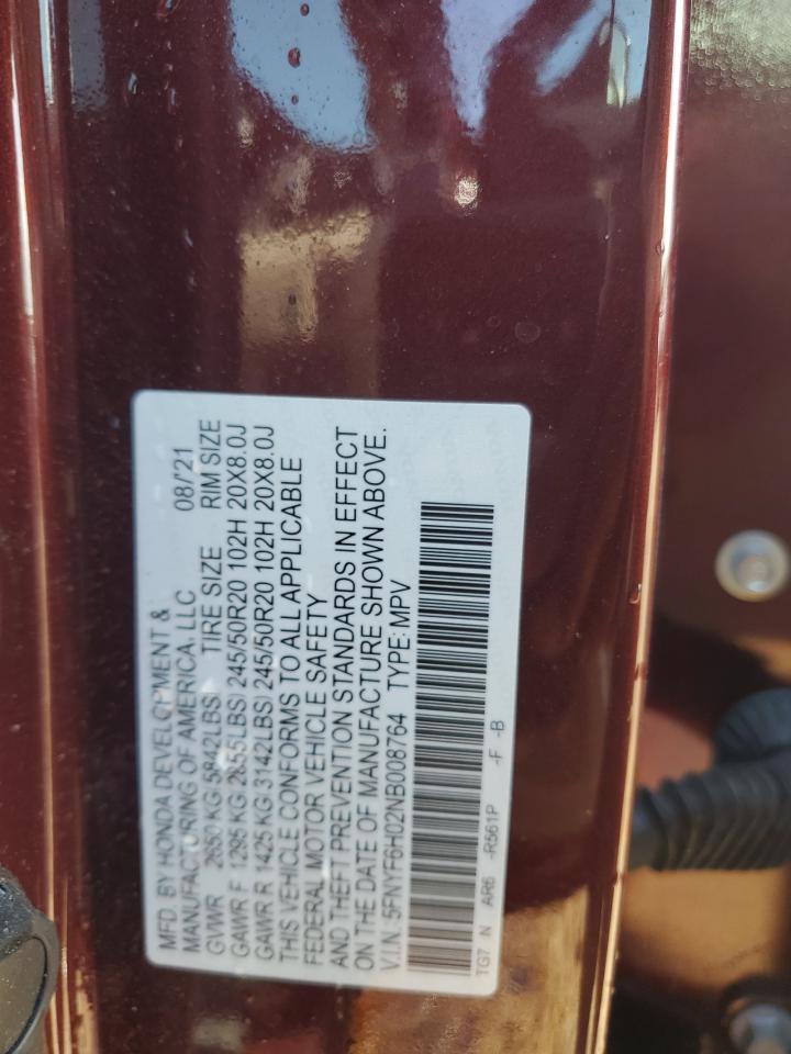 HONDA PILOT 3.5 2022 р.в., Повний привід (5FNYF6H02NB008764) з США