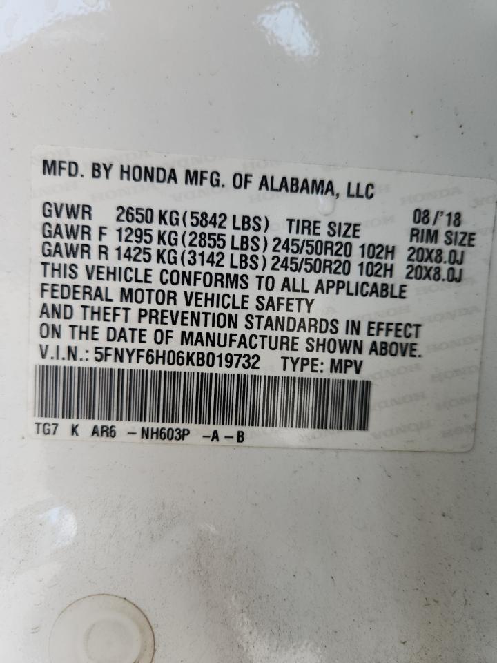 HONDA PILOT 3.5 2019 р.в., Повний привід (5FNYF6H06KB019732) з США