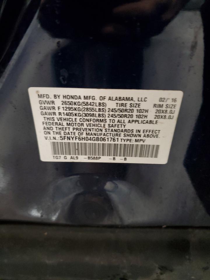 HONDA PILOT 3.5 2016 р.в., Повний привід (5FNYF6H04GB061761) з США