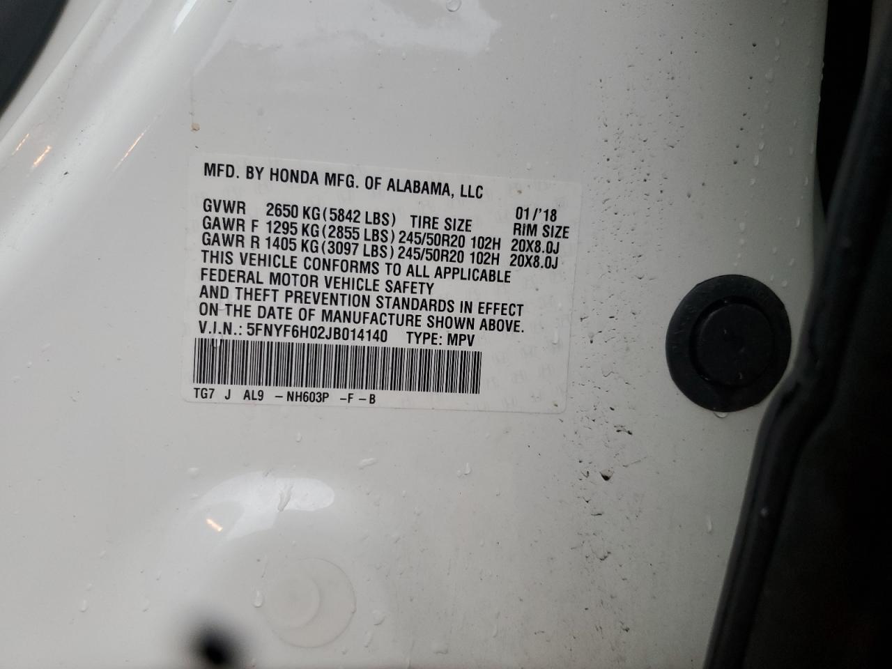 Колір БілийЦиліндри 6Привід Повний привідVIN 5FNYF6H02JB014140Стан Заводиться та їде (перевірено)Ушкодження Задня