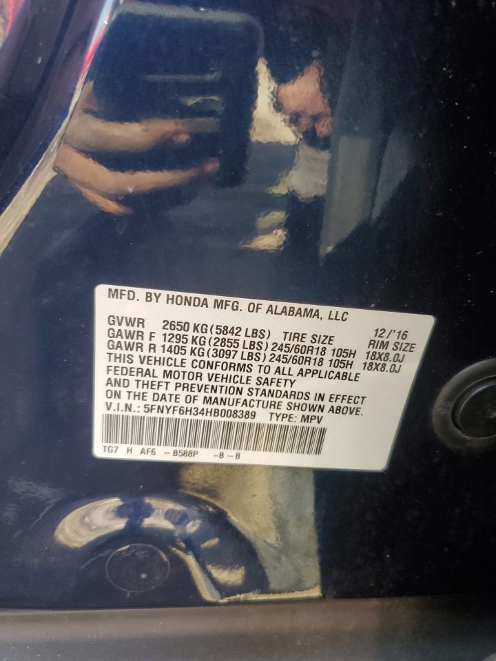 HONDA PILOT 3.5 2017 р.в., Повний привід (5FNYF6H34HB008389) з США