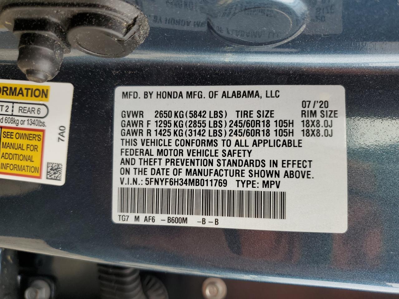 Колір БірюзовийЦиліндри 6Привід Повний привідVIN 5FNYF6H34MB011769Стан НевідомоУшкодження Передня або задня