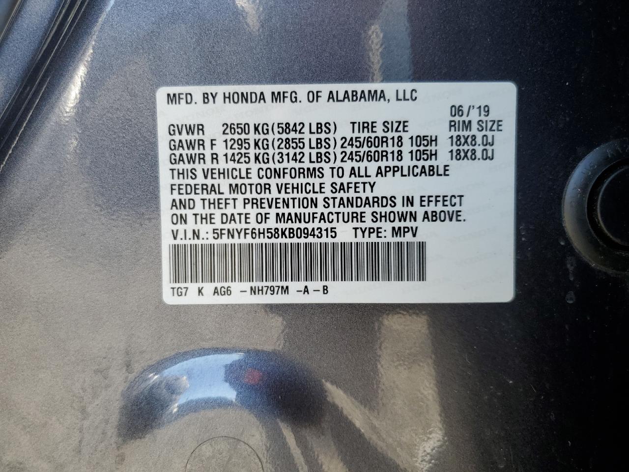 HONDA PILOT 3.5 2019 р.в., Повний привід (5FNYF6H58KB094315) з США