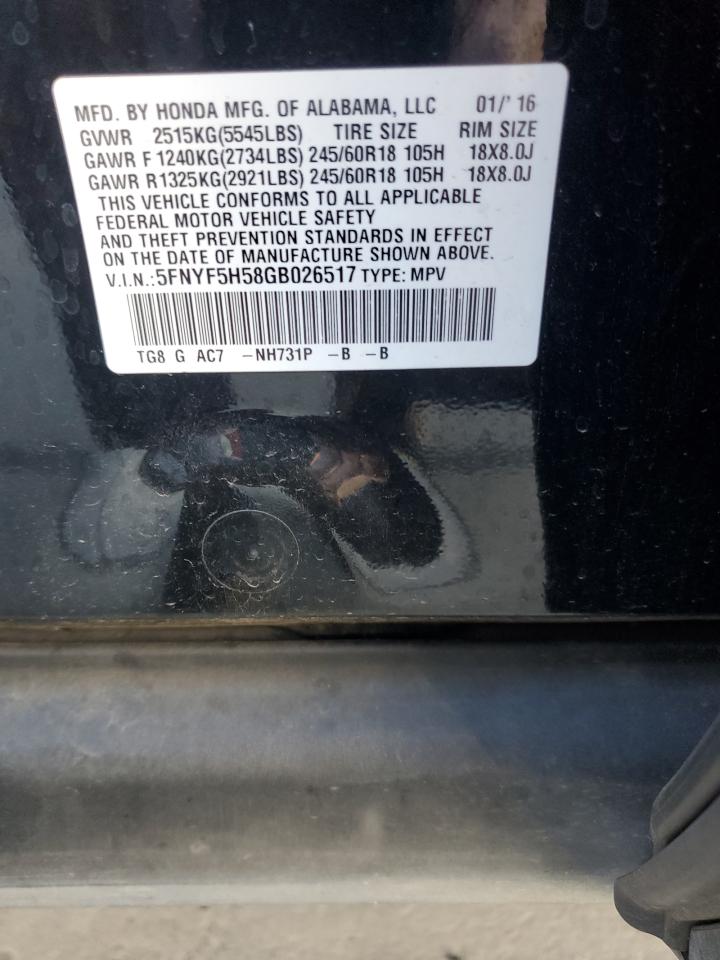 HONDA PILOT 3.5 2016 р.в., (5FNYF5H58GB026517) з США
