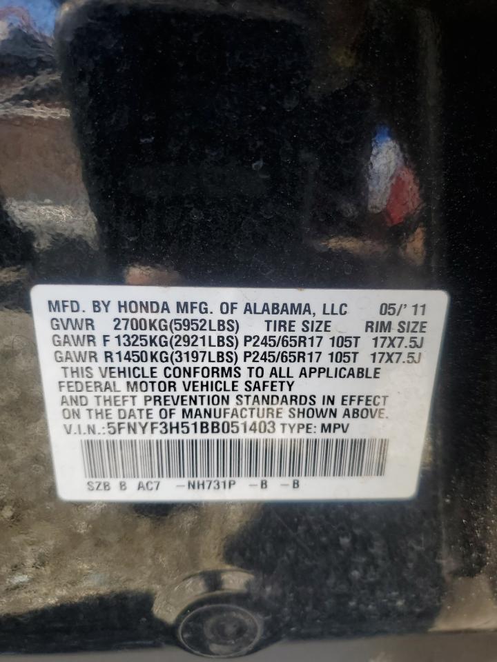 Колір ЧорнийЦиліндри 6VIN 5FNYF3H51BB051403Стан НевідомоУшкодження Передня або задня
