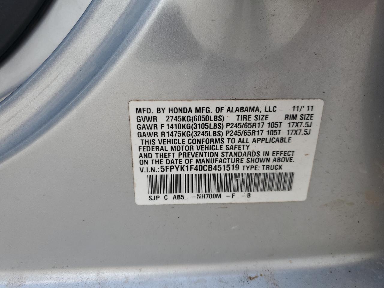 HONDA RIDGELINE 3.5 2012 р.в., 4x4 з переднім приводом (5FPYK1F40CB451519) з США