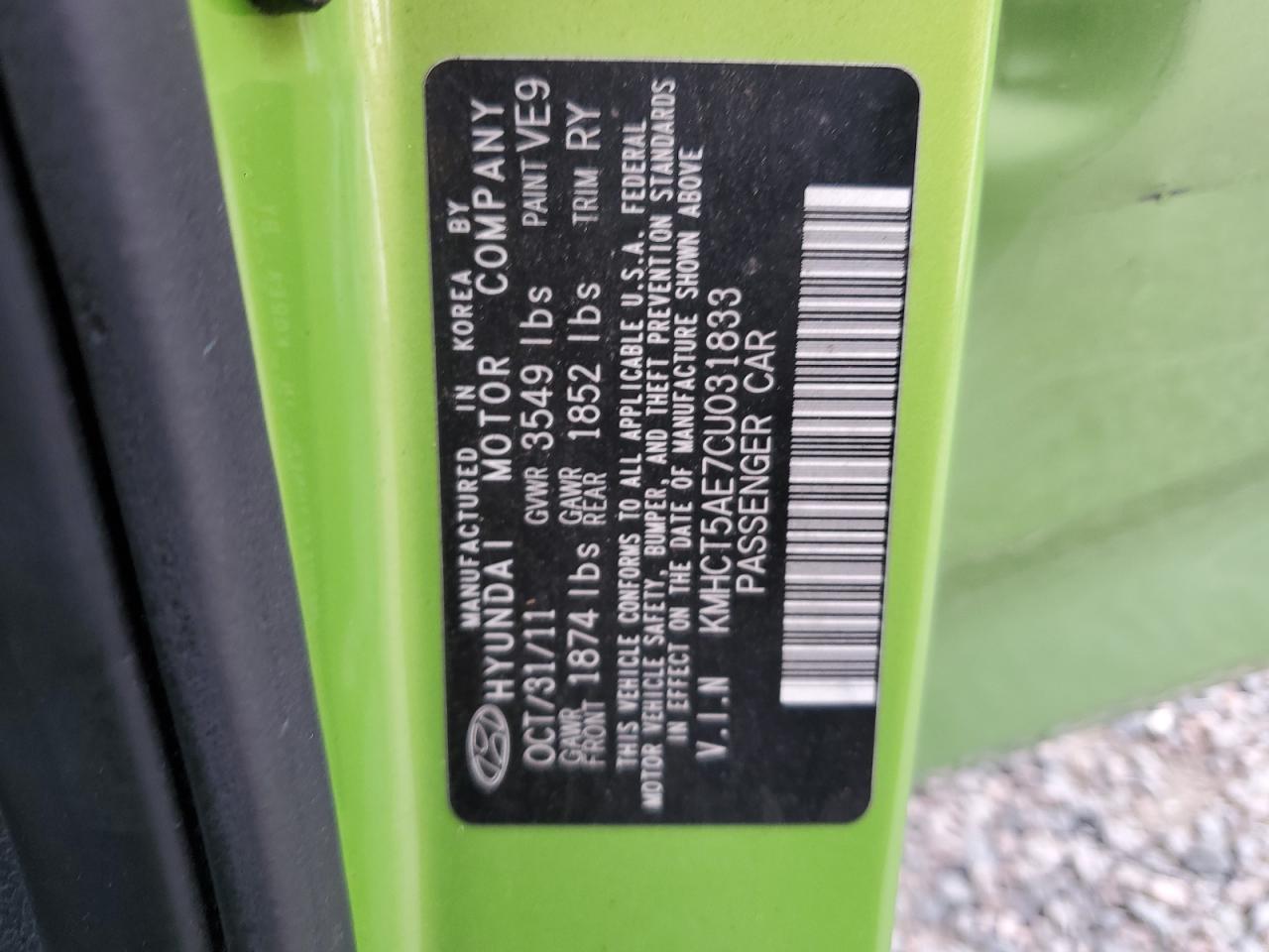Колір ЗеленийЦиліндри 4VIN KMHCT5AE7CU031833Стан НевідомоУшкодження Передня або задня