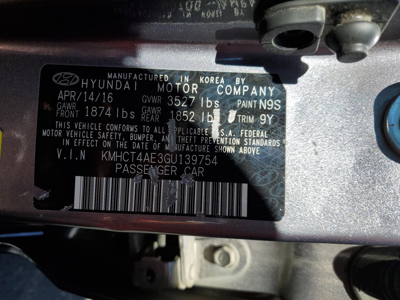 HYUNDAI ACCENT 1.6 2016 р.в., (KMHCT4AE3GU139754) з США