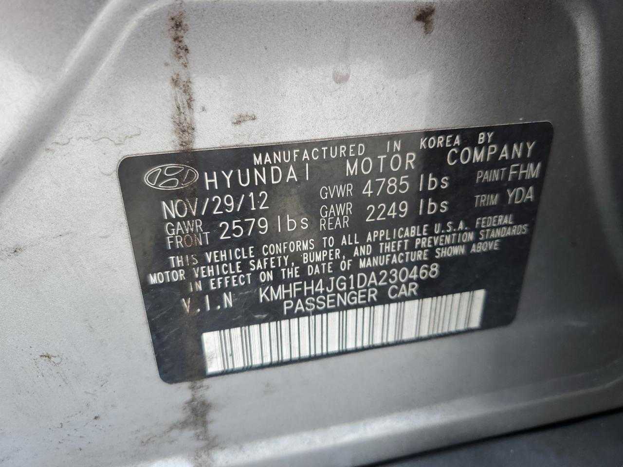 Колір СірийЦиліндри 6VIN KMHFH4JG1DA230468Стан Заводиться та їде (перевірено)Ушкодження З боківДата аукціону 2025-11-07