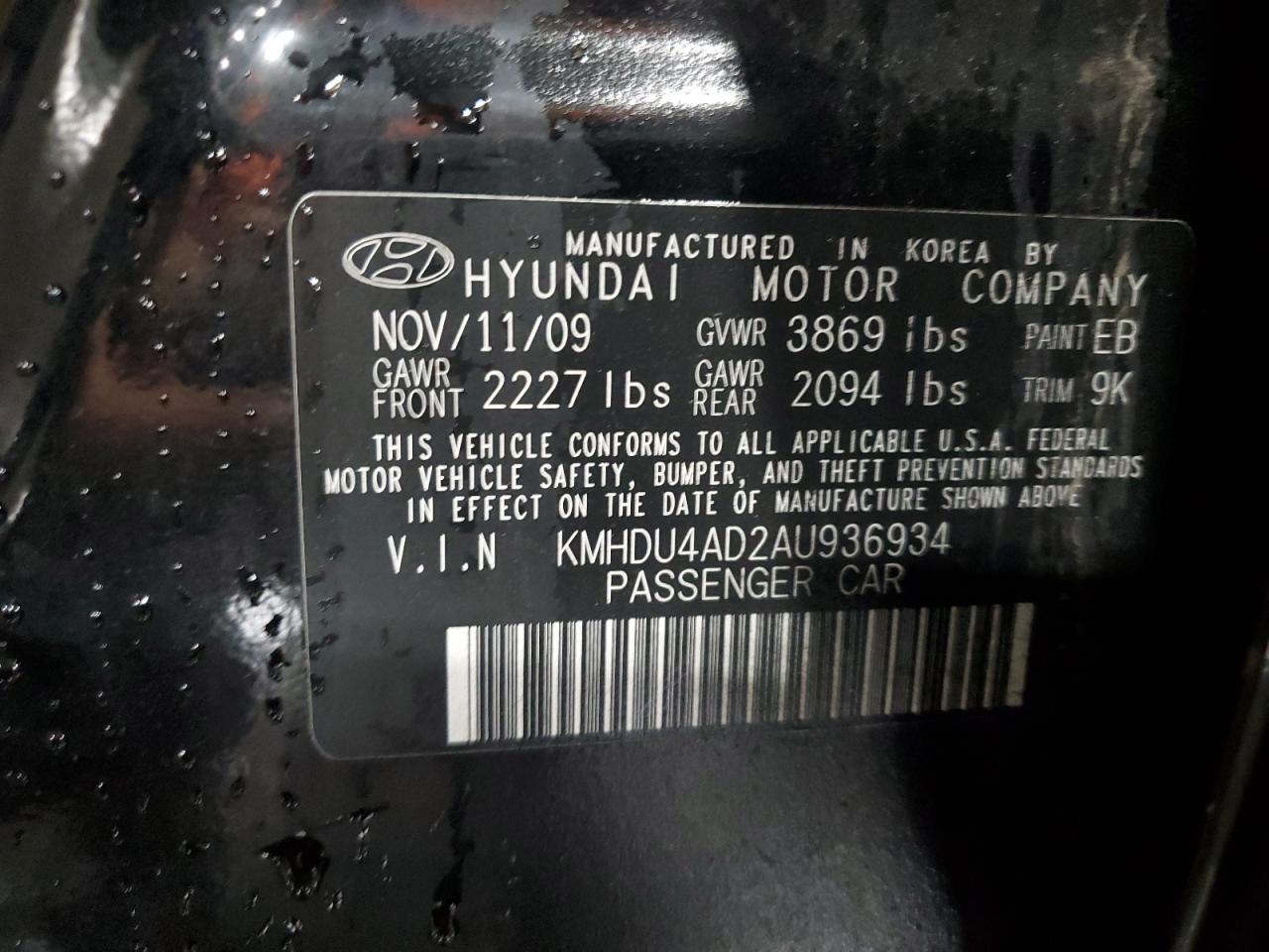 Колір ЧорнийЦиліндри 4VIN KMHDU4AD2AU936934Стан НевідомоУшкодження Передня або задня