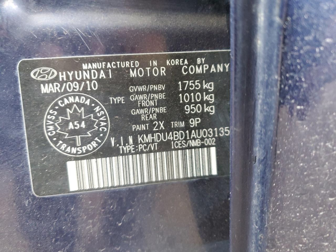 HYUNDAI ELANTRA 2.0 2010 р.в., (KMHDU4BD1AU031356) з США