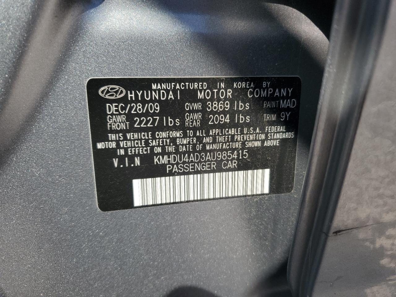 HYUNDAI ELANTRA 2.0 2010 р.в., (KMHDU4AD3AU985415) з США