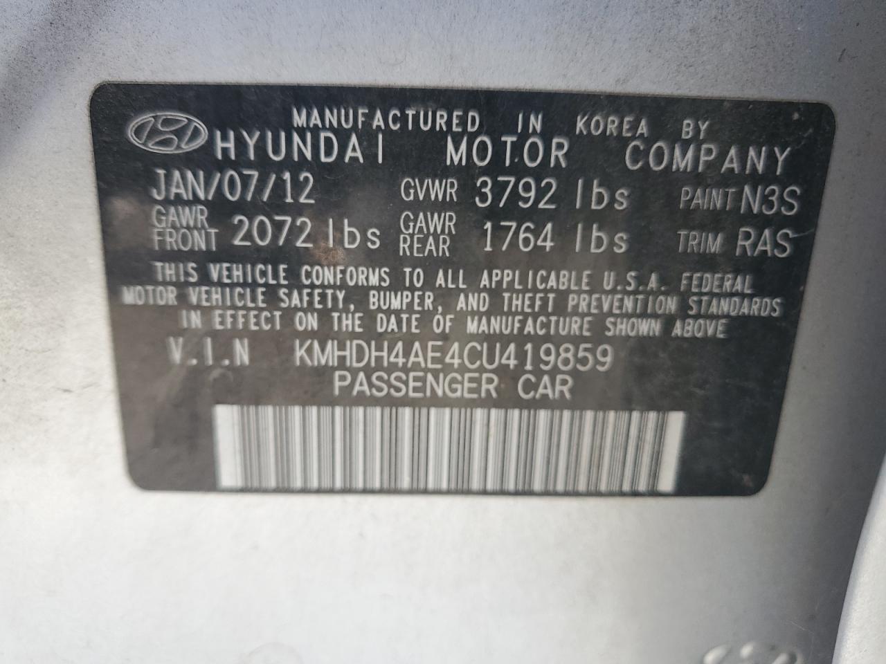 2012 HYUNDAI ELANTRA LIMITED (ULSAN PLANT)