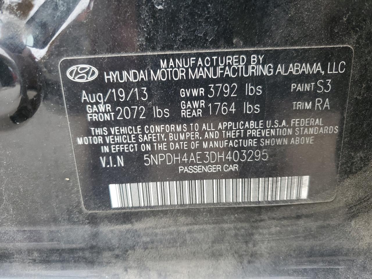 2013 HYUNDAI ELANTRA GLS (ULSAN PLANT)