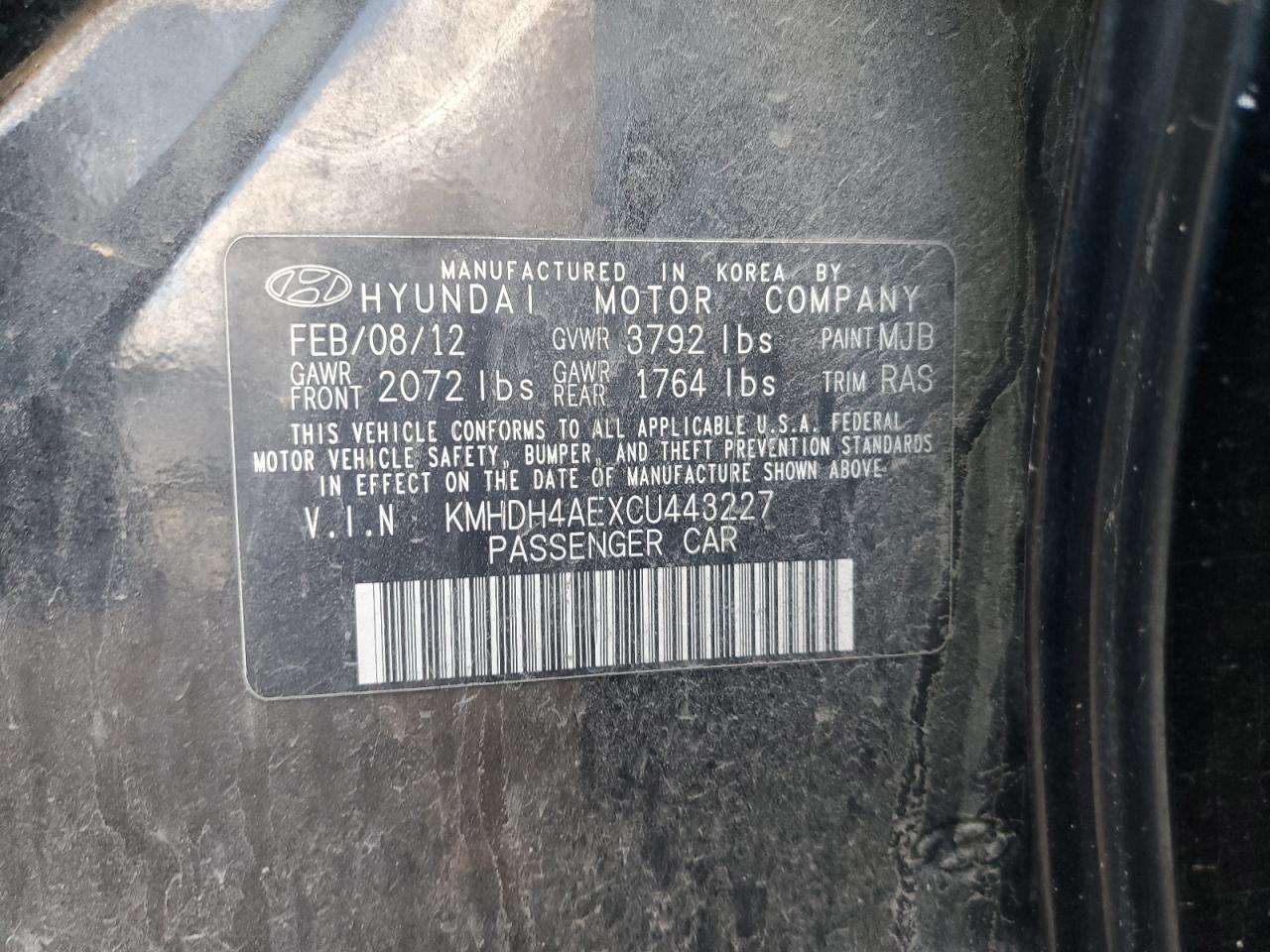 HYUNDAI ELANTRA 1.8 2012 р.в., (KMHDH4AEXCU443227) з США
