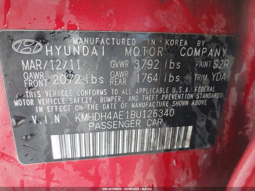 2011 HYUNDAI ELANTRA LIMITED (ULSAN PLANT)