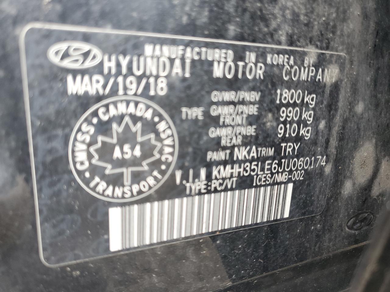 Колір ЧорнийЦиліндри 4VIN KMHH35LE6JU060174Стан НевідомоУшкодження Пожежа