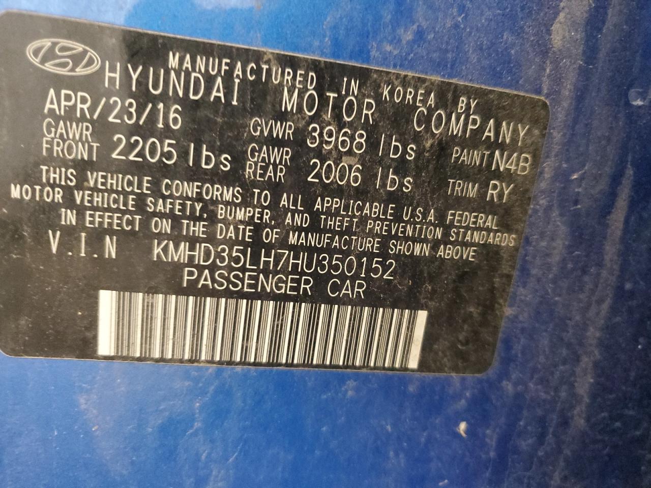 HYUNDAI ELANTRA 2.0 2017 р.в., (KMHD35LH7HU350152) з США