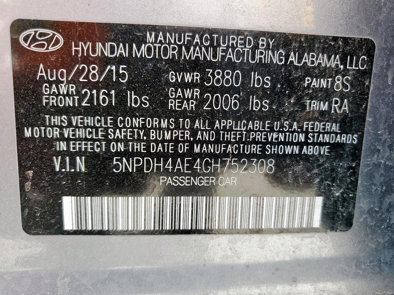HYUNDAI ELANTRA 1.8 2016 р.в., (5NPDH4AE4GH752308) з США