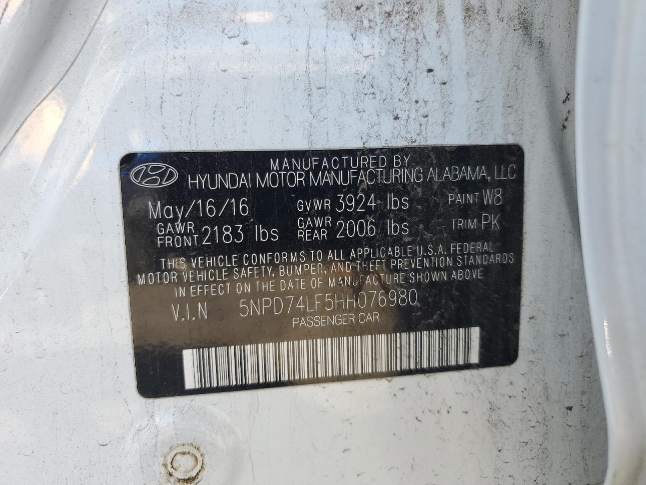HYUNDAI ELANTRA 2.0 2017 р.в., (5NPD74LF5HH076980) з США
