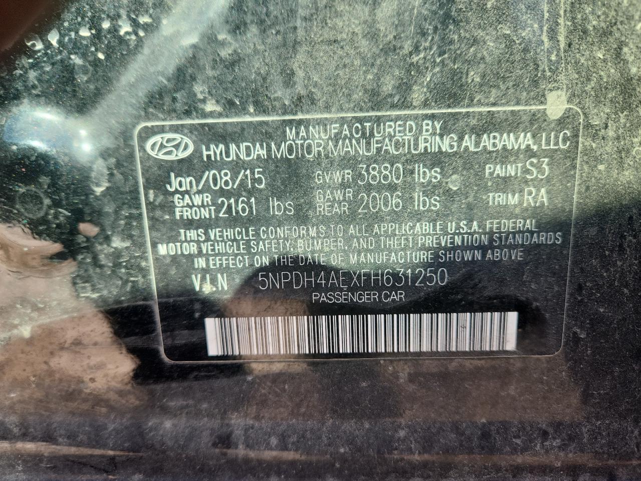 2015 HYUNDAI ELANTRA SE (ULSAN PLANT)
