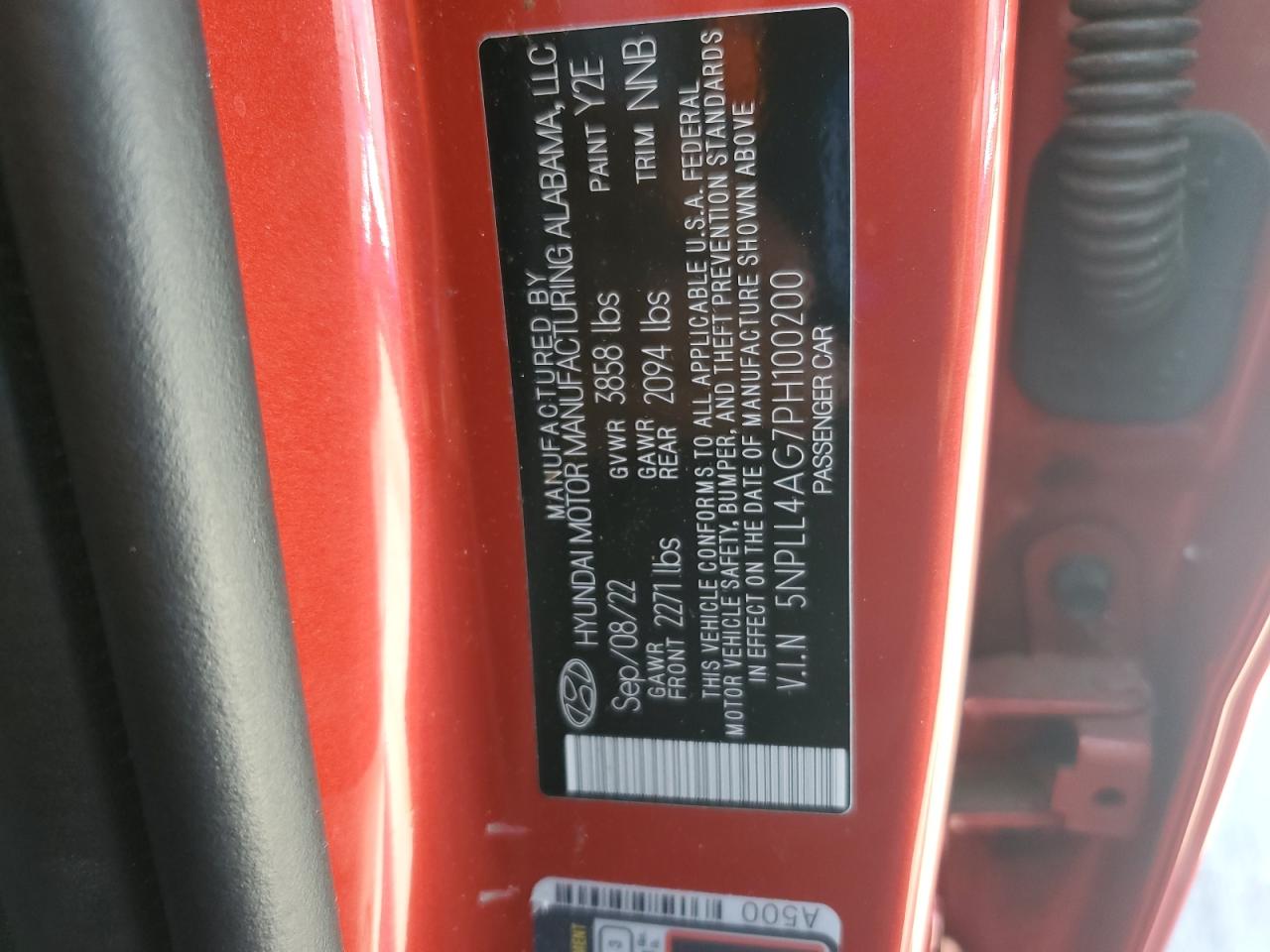 Колір ЧервонийЦиліндри 4VIN 5NPLL4AG7PH100200Стан НевідомоУшкодження Передня або задня