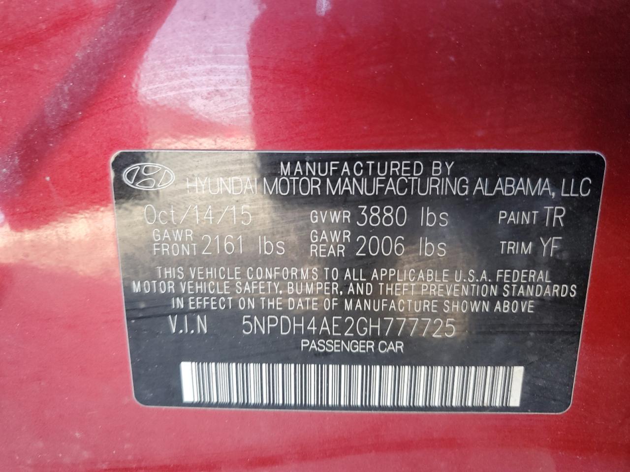 Колір БордовийЦиліндри 4VIN 5NPDH4AE2GH777725Стан Заводиться та їде (перевірено)Ушкодження Передня або задняДата аукціону 2025-11-25