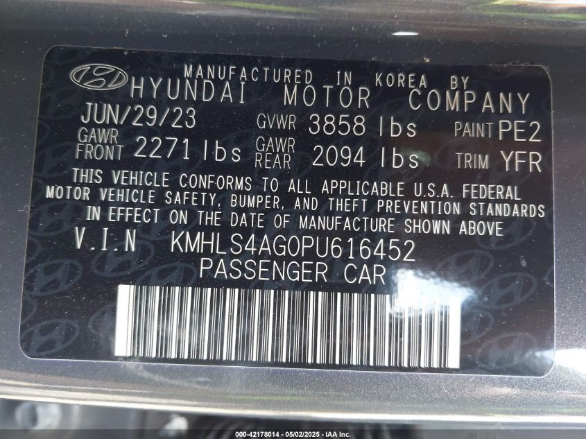 HYUNDAI ELANTRA 2.0 2023 р.в., Передній привід (KMHLS4AG0PU616452) з США