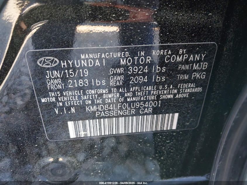 HYUNDAI ELANTRA 2.0 2020 р.в., Передній привід (KMHD84LF0LU954001) з США