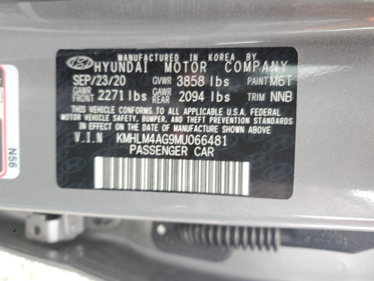 Колір СірийЦиліндри 4VIN KMHLM4AG9MU066481Стан Заводиться та їде (перевірено)Ушкодження З боківДата аукціону 2025-11-11