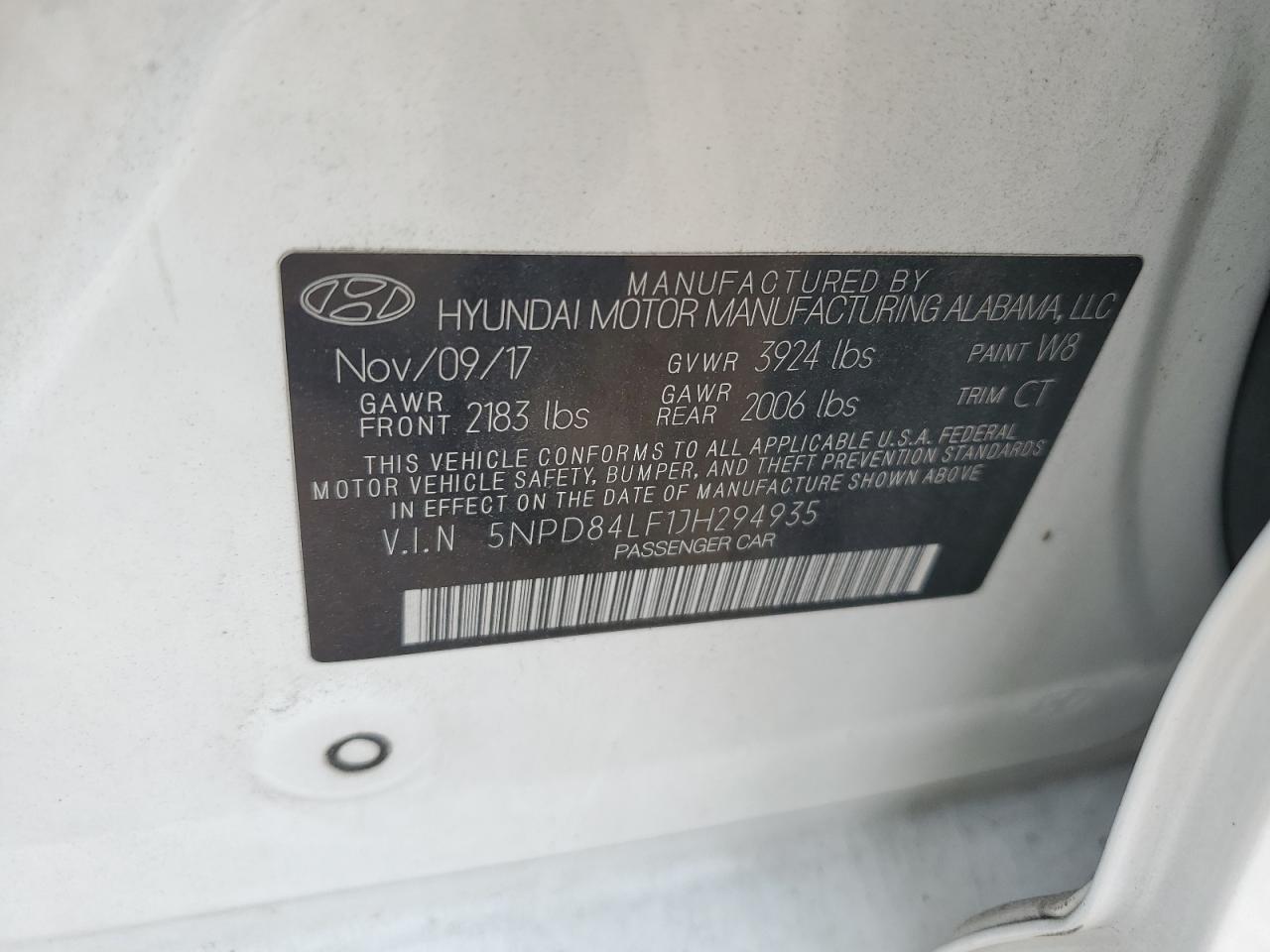 Колір БілийЦиліндри 4VIN 5NPD84LF1JH294935Стан Заводиться та їде (перевірено)Ушкодження Передня або задня
