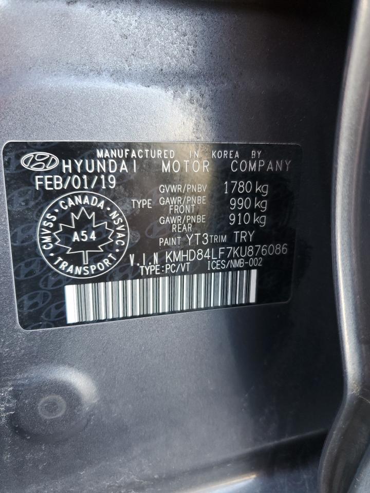 HYUNDAI ELANTRA 2.0 2019 р.в., (KMHD84LF7KU876086) з США