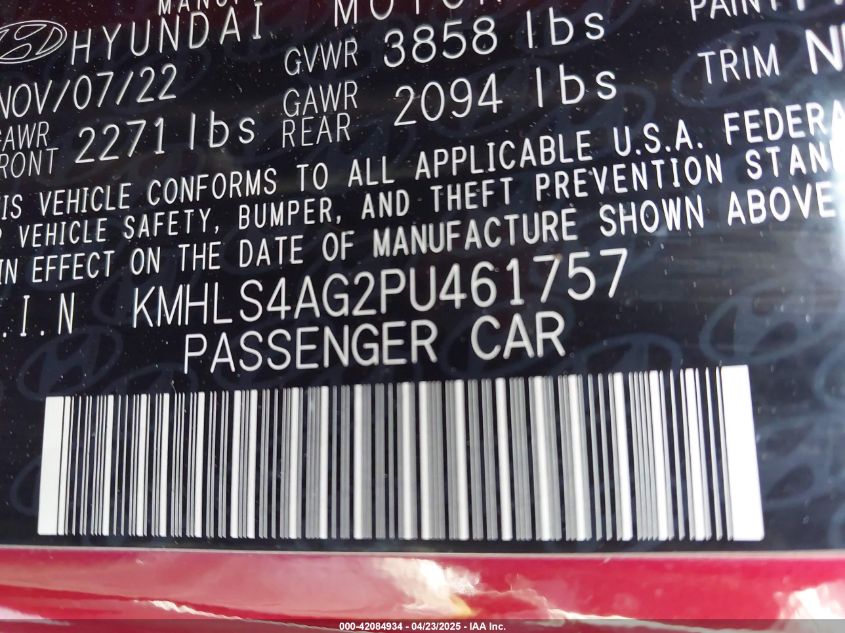 HYUNDAI ELANTRA 2.0 2023 р.в., Передній привід (KMHLS4AG2PU461757) з США