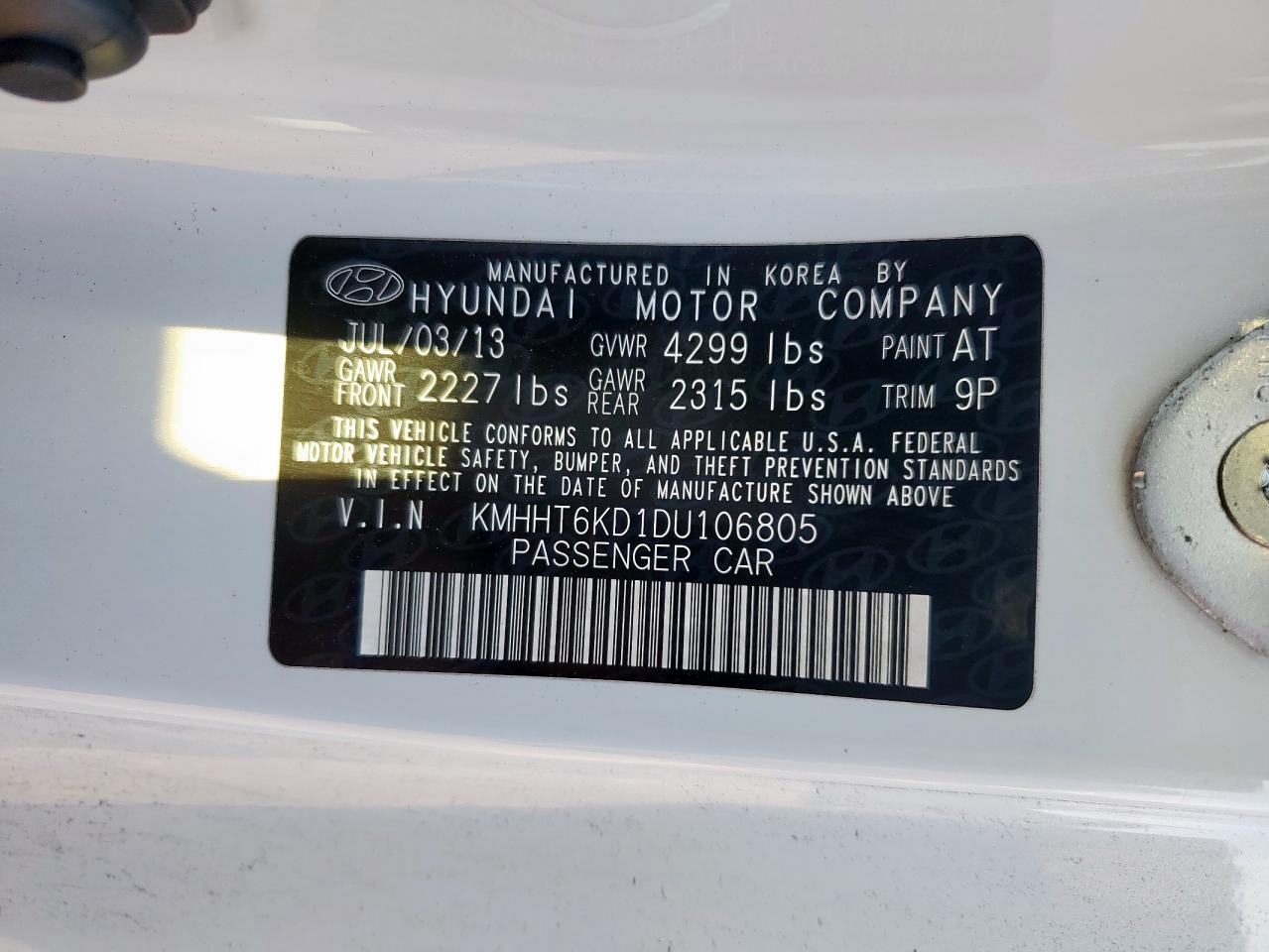 Колір БілийЦиліндри 4Привід Задній привідVIN KMHHT6KD1DU106805Стан Заводиться та їде (перевірено)Ушкодження ЗадняДата аукціону 2025-11-04