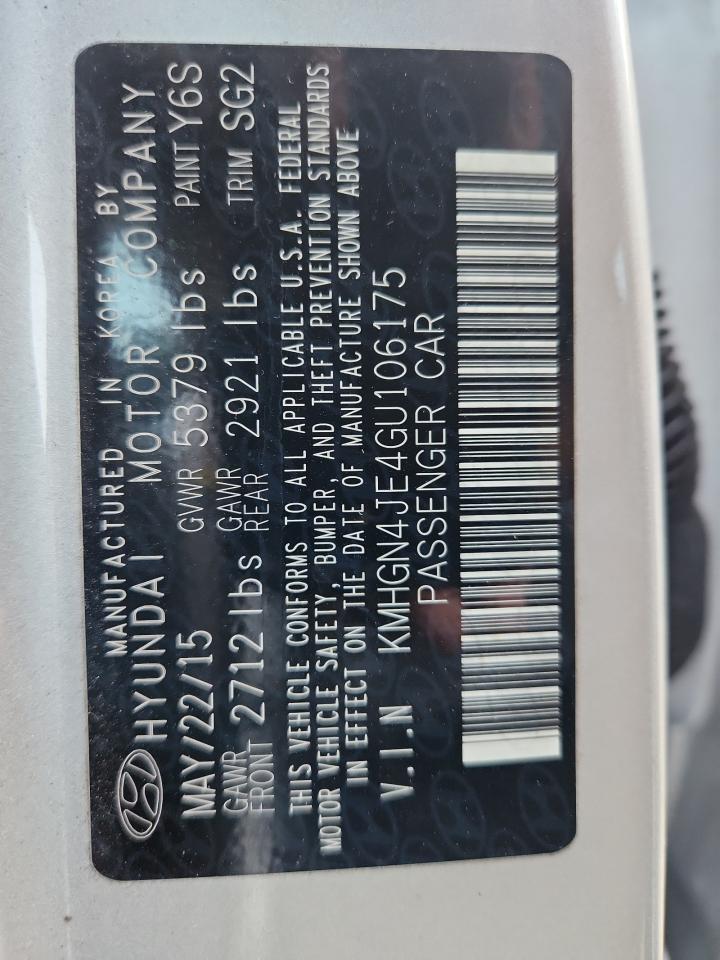 HYUNDAI GENESIS 3.8 2016 р.в., Задній привід (KMHGN4JE4GU106175) з США