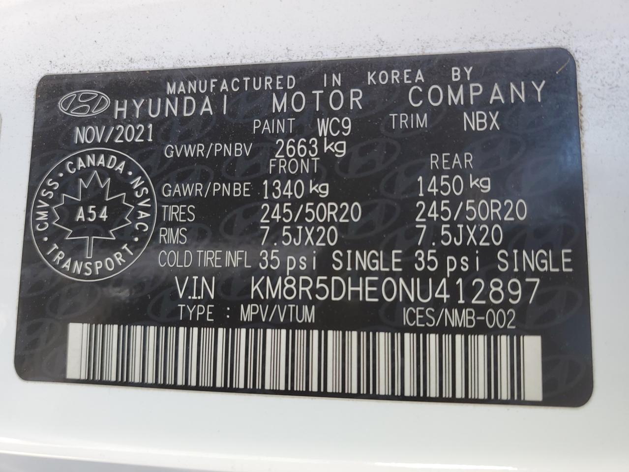 Колір БілийЦиліндри 6Привід Повний привідVIN KM8R5DHE0NU412897Стан НевідомоУшкодження Передня або задняДата аукціону 2025-11-25