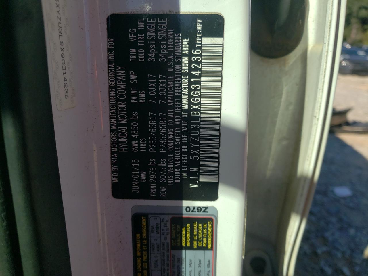 Колір БілийЦиліндри 4VIN 5XYZU3LBXGG314236Стан Заводиться та їде (перевірено)Ушкодження Передня або задня