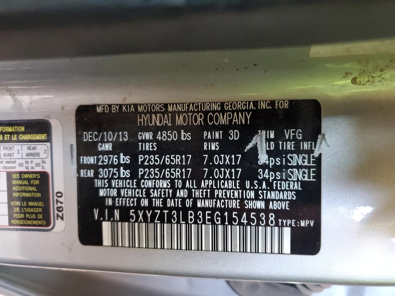 Колір СрібнийЦиліндри 4VIN 5XYZT3LB3EG154538Стан Заводиться та їде (перевірено)Ушкодження Передня або задня